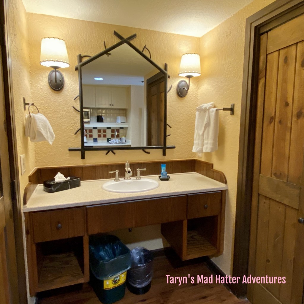 Around 3:00 p.m. we got our text that the room was ready! The Wilderness Lodge has three different “sections” if you will. The regular Lodge part, Copper Creek Villas (Disney Vacation Club), and Boulder Ridge Villas (Disney Vacation Club). Although two parts are Vacation Club, anyone may book there as a cash room as well.