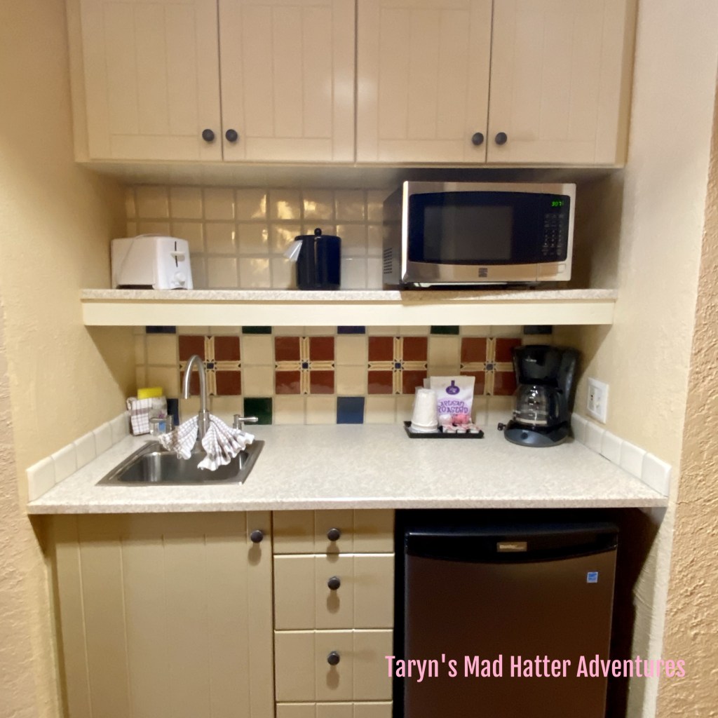 I love having the kitchenette available! I usually order a case of water, and can refrigerate that and any leftovers or snacks we get to bring back to the room. The toaster is nice for quick breakfasts!