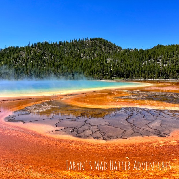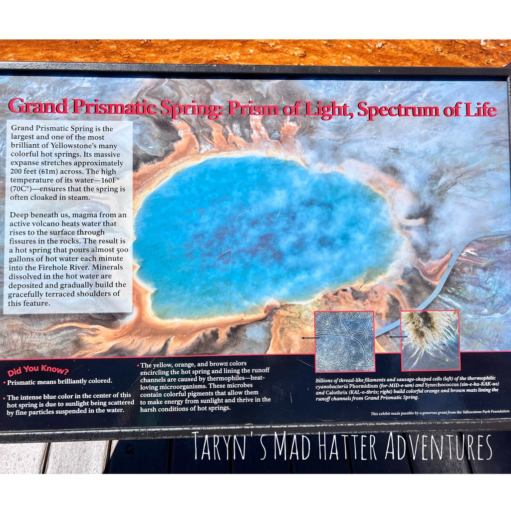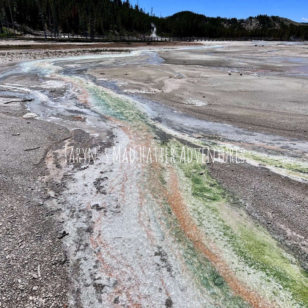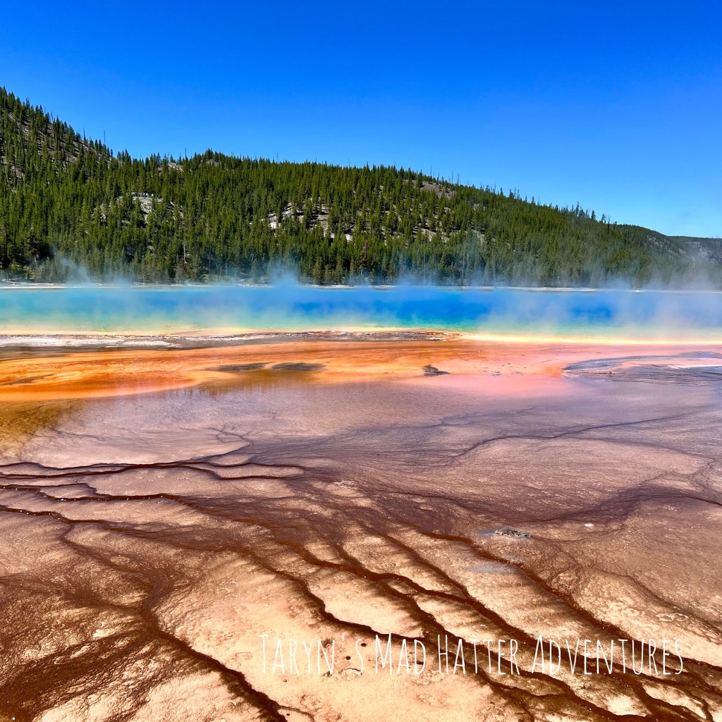 Upon entering the park, we headed south towards the Midway Geyser Basin, which is where the Grand Prismatic Spring is located. When researching the trip, I knew this was one destination I definitely wanted to visit! This area was veryyyyy busy. The small parking lot was completely full and we waited in a long line of cars to park one by one as people left their spots. In hindsight, we left the hotel around 10 a.m. and finally were able to park around 11:30 a.m. If you are interested in this area, I would get there in the early morning!