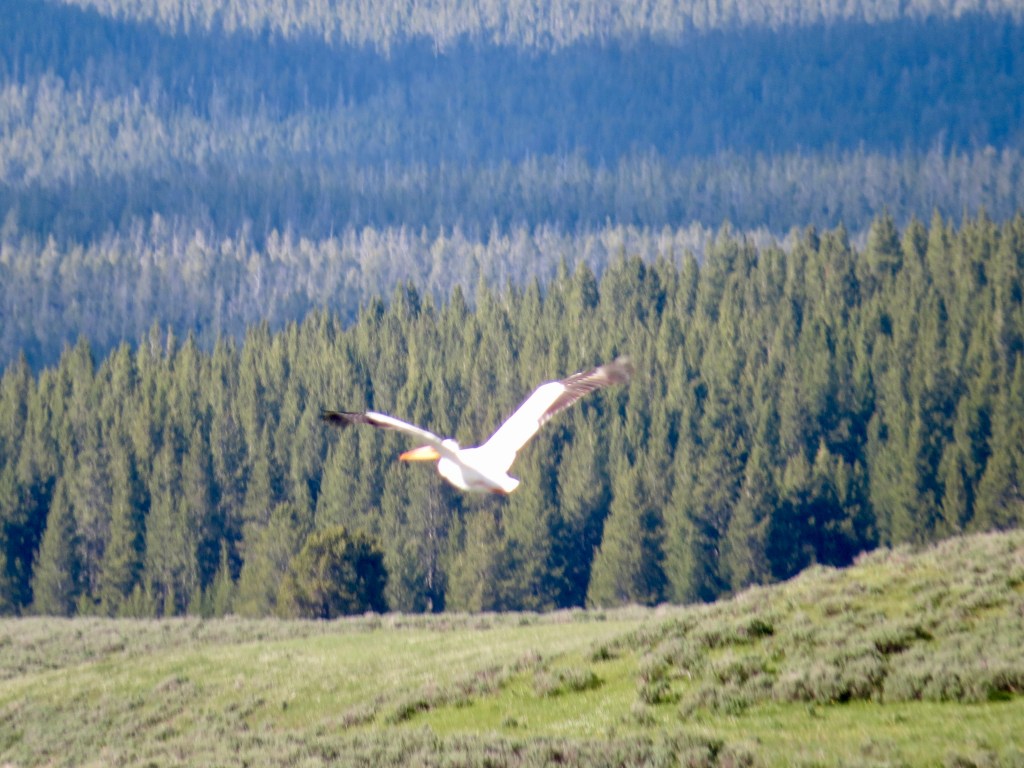 This bird was practically flying parallel with us, but it was so far away. I had to use my good camera while driving in the car, so this is the best I could get!