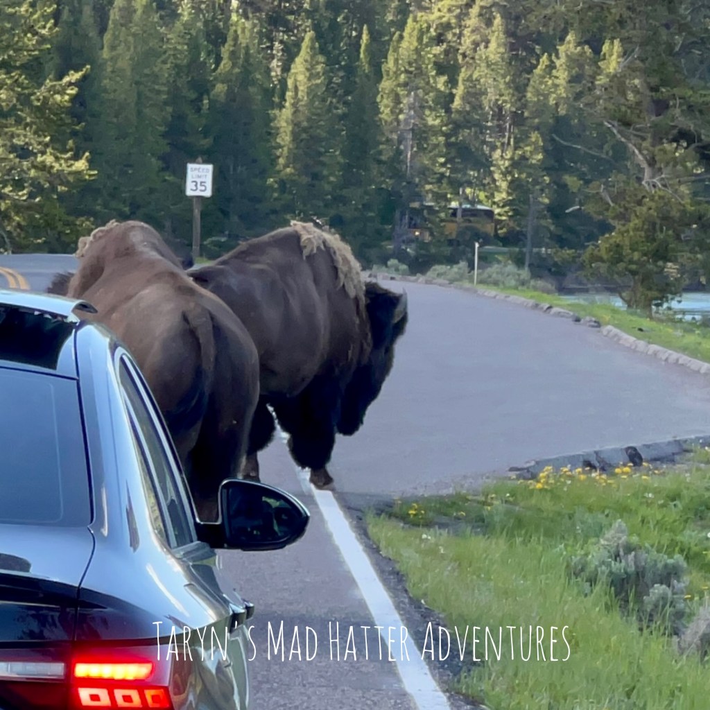We had an exciting moment on the way to Old Faithful. There were tons of cars pulled over, and park rangers were out with cones directly traffic along. This could only mean one thing….