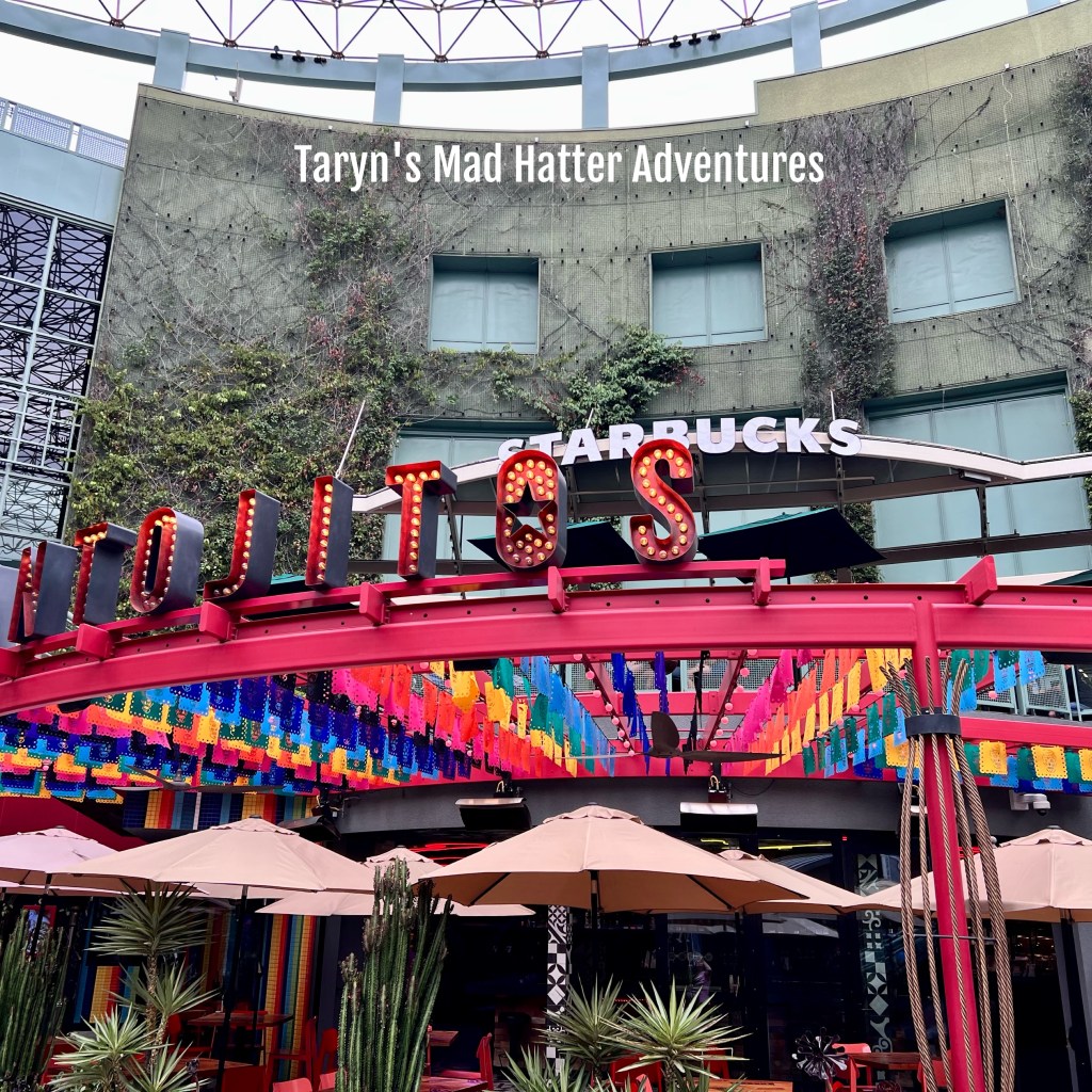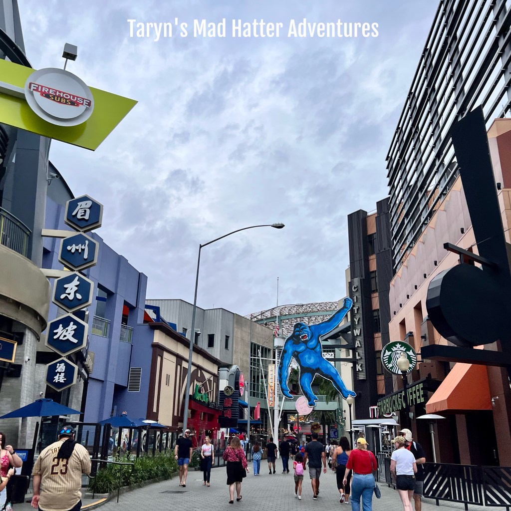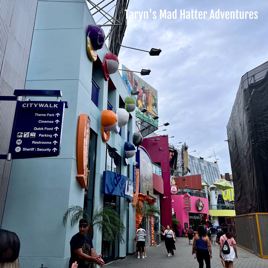 Once parked in the parking garage we headed toward the park. To get there, we had to walk through City Walk. This City Walk was much different than the one in Orlando! Some of the shops and restaurants were the same, but the layout was not the same. It seemed smaller and more closed in. Shops were one after the other, connected along a walkway.