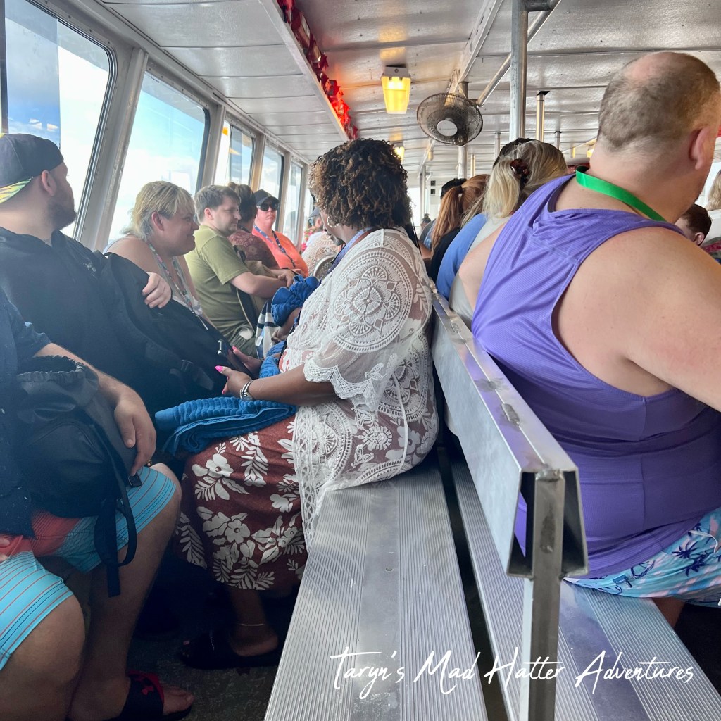 After eating, we got in line to get on the next bus. We were done with our stops and heading back to the ship. To do so though, we had to take a bus to Bayside Marketplace and then get on another bus there to bring us back to the ship.