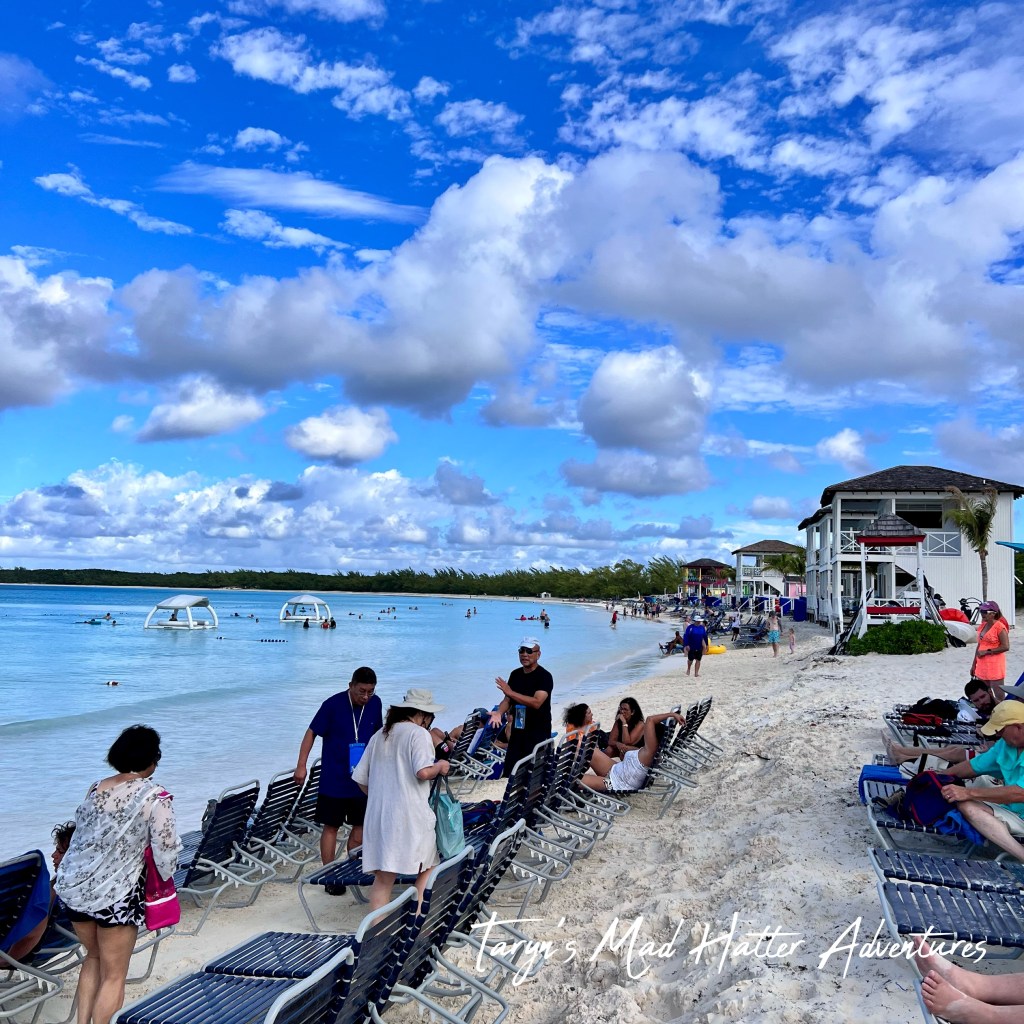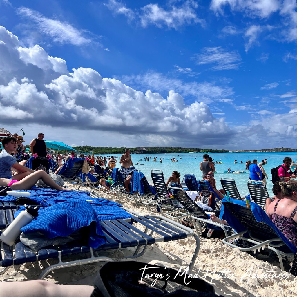 They did have chairs for hotel guests. We did sit in two of them, and our attendant said it was fine as long as our towels from the ship were not out. It never was full. The beach however, WAS full. You could rent individual chairs and umbrellas from a stand on the beach.