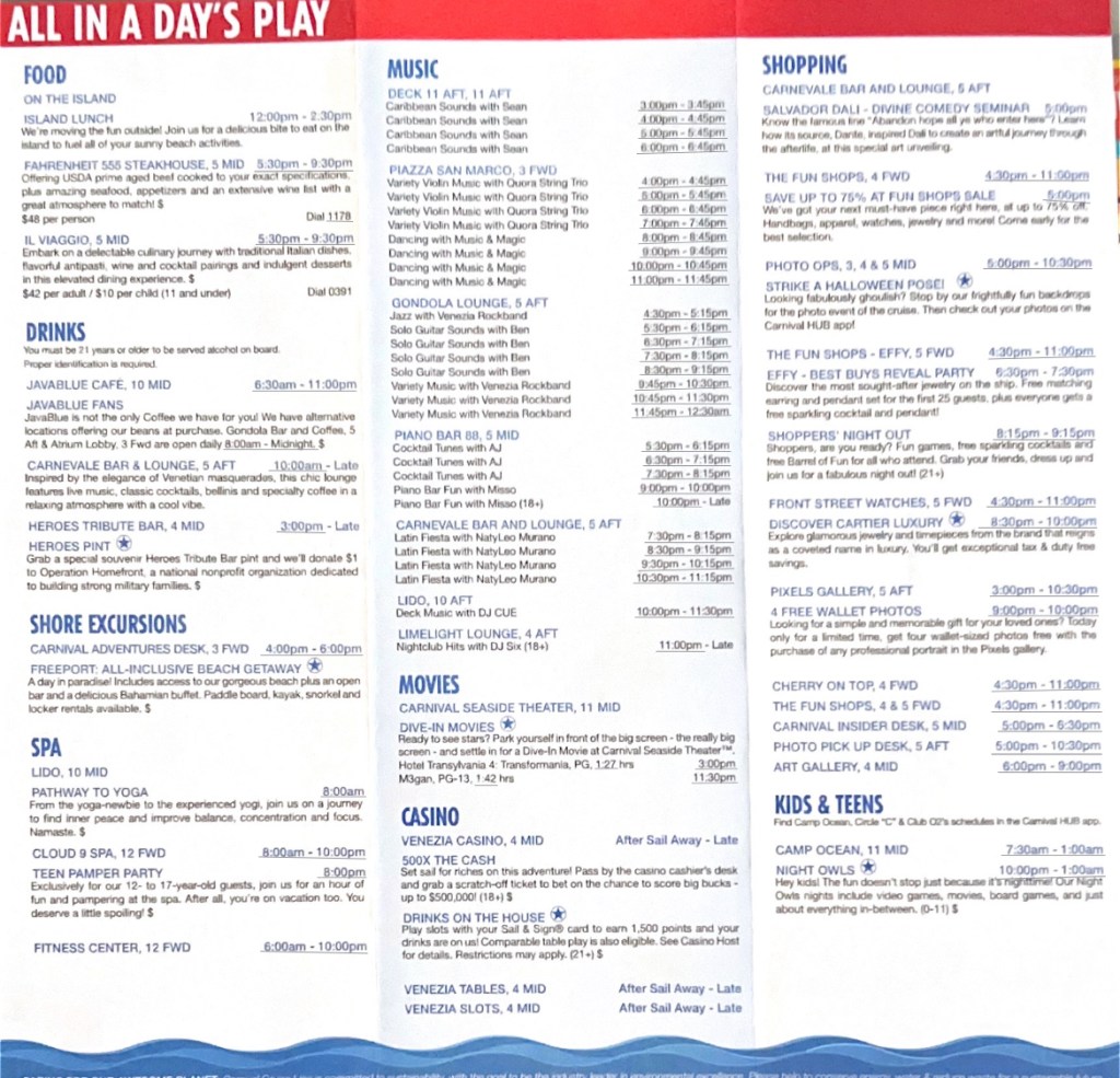In summary from this part of my day…there is no shortage of seating areas, bars, shopping, or places to eat! This ship is amazing, with so much to do, and the crew is one of the friendliest I have encountered.
