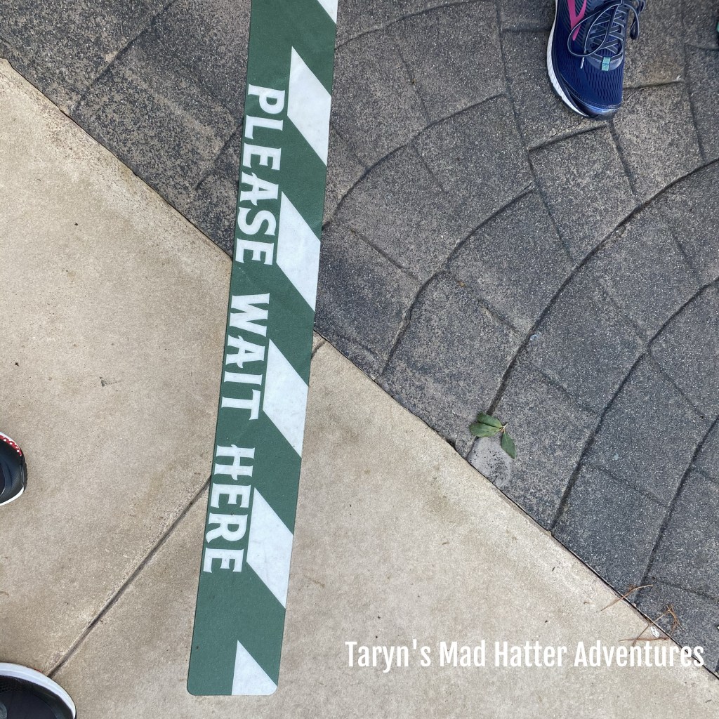 The lanes are numbered and the cast member will tell you which lane to enter. There are signs all along the lanes with these social distance markers.