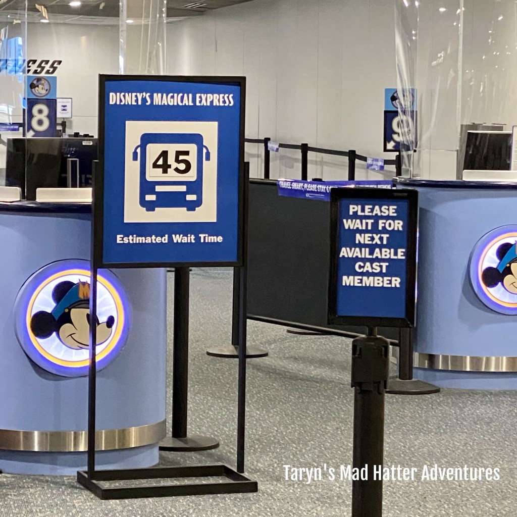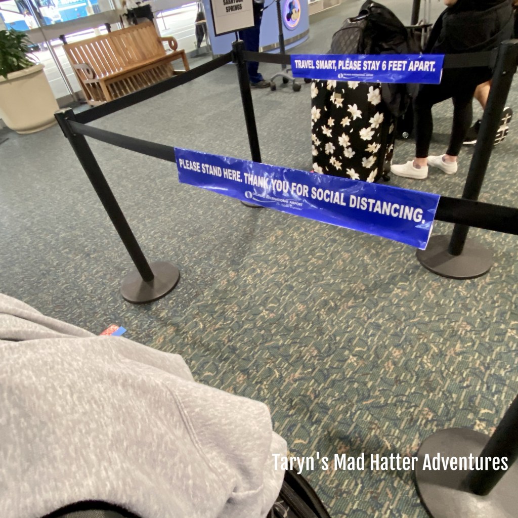 Once at the airport, security was a breeze. Everything is still normal…shoes and coats off, everything on the belt and through the scanner. Everyone in the seating area was social distancing. Our flight was scheduled for 7:05 a.m. and we landed and had our luggage by 9:45 a.m. A note about Disney’s Magical Express…it is not the same! They no longer send you yellow tags in the mail or get your luggage and deliver it to the resort. YOU must get your own luggage from Baggage Claim and take it to the Magical Express with you. We flew Southwest, so our terminal was the A Terminal. We had to get our luggage from there and head over to the B Terminal to get on the Magical Express.