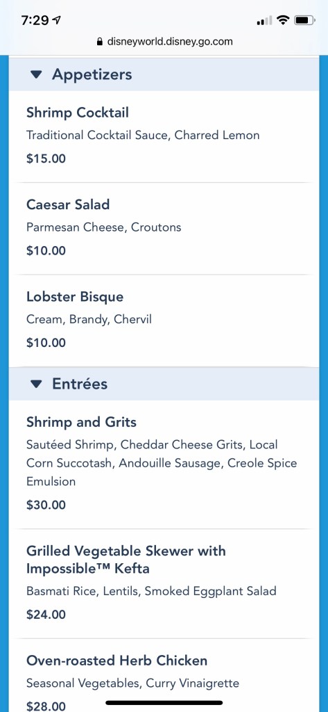Overall, we really loved our experience here. Yes, it’s pricey at $79 per person. But that includes an appetizer, entree, and dessert. It’s really not THAT much more than a two credit Disney table service restaurant. The atmosphere was really cool, and the service was great. I definitely would come again for lunch or to sit in the lounge area!