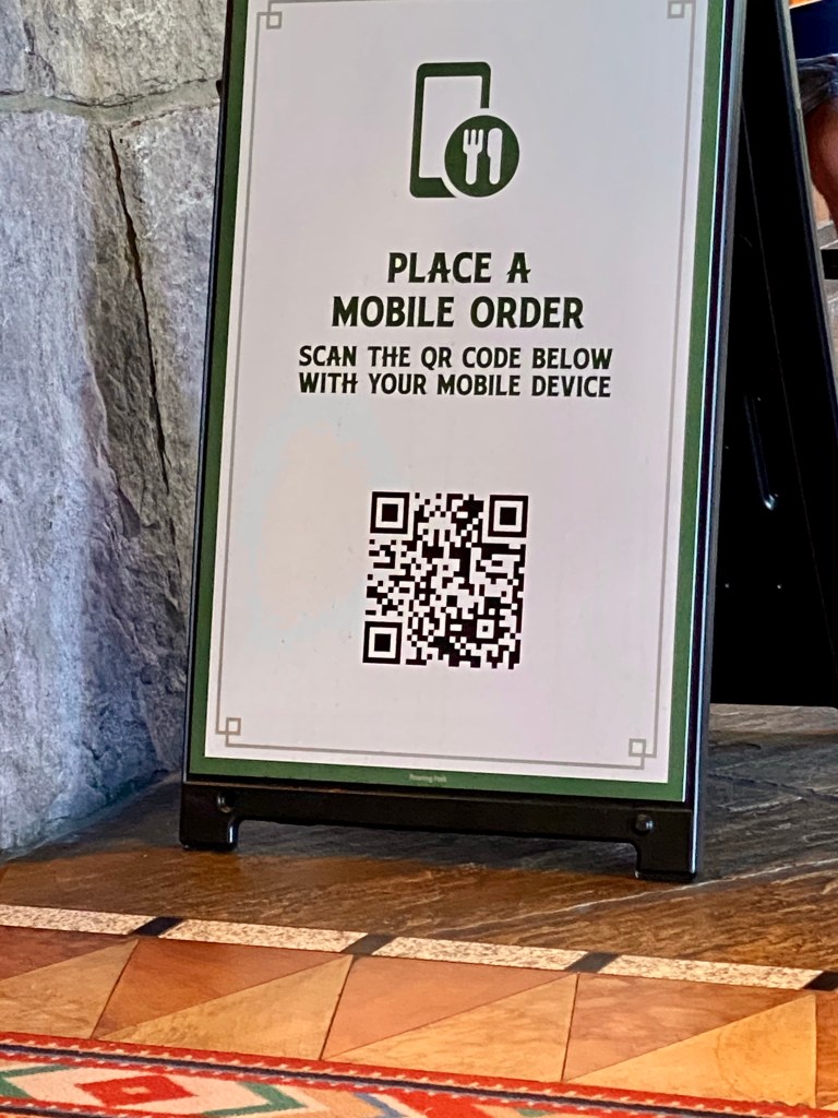 Another very important note, all quick service locations are MOBILE ORDER ONLY! This includes resorts and parks. Even if you only want a muffin or an orange juice. It’s all on the My Disney Experience app, or you scan a bar code located at the location.