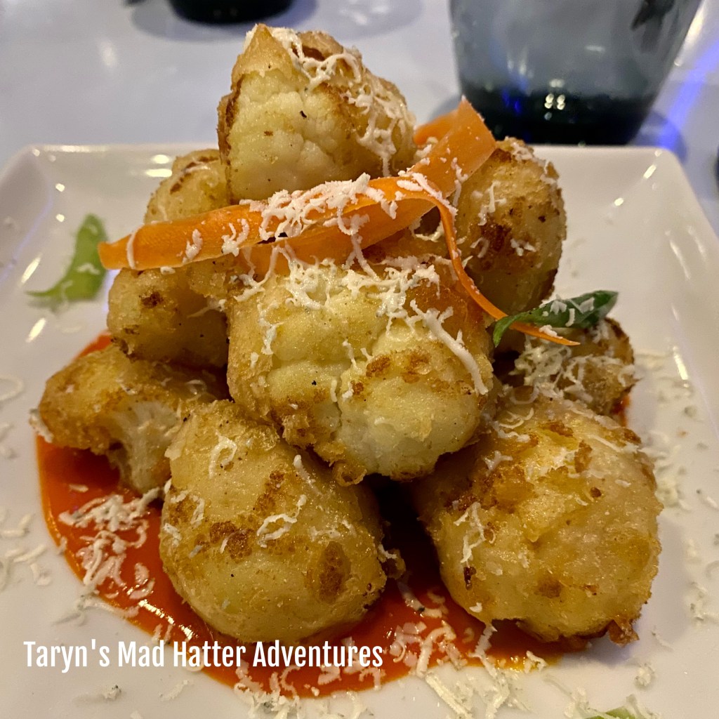 Blue Moon Cauliflower–Tempura Fried Cauliflower, Housemade Hot Sauce, Blue Cheese Dust