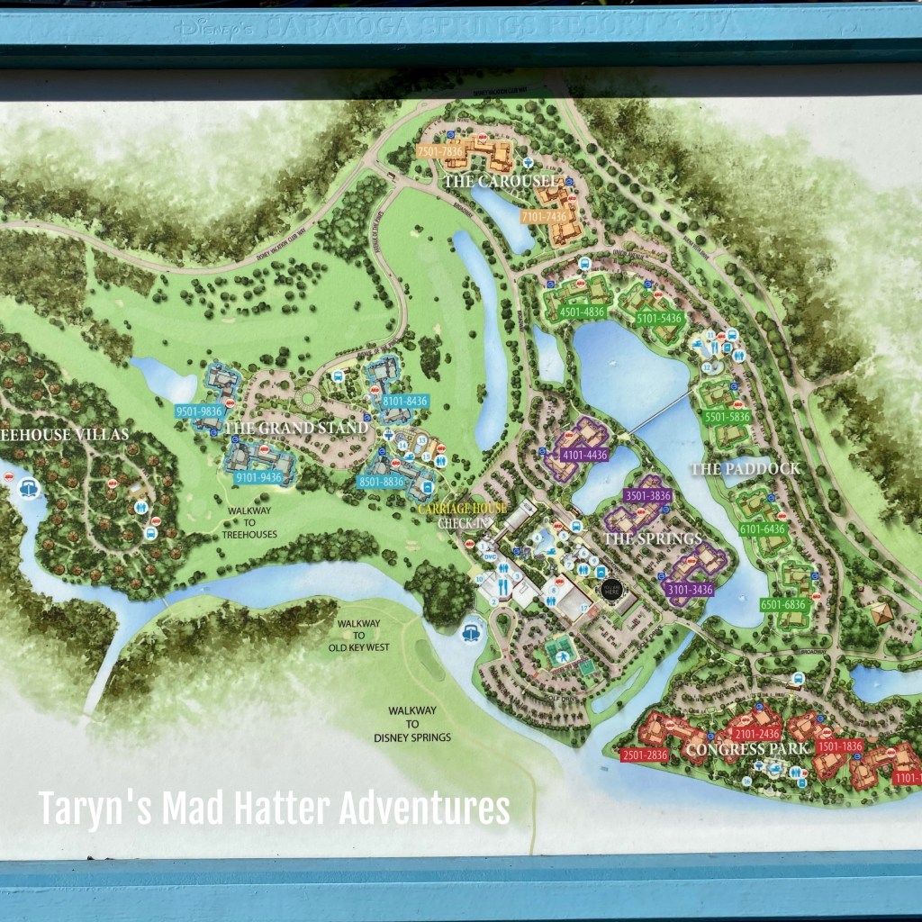 Here you can see just how big the Saratoga Springs Resort & Spa is. There are several sections and several bus stops. I was starting near the Carriage House and had to make my way through Congress Park to the bridge that connects to Disney Springs.