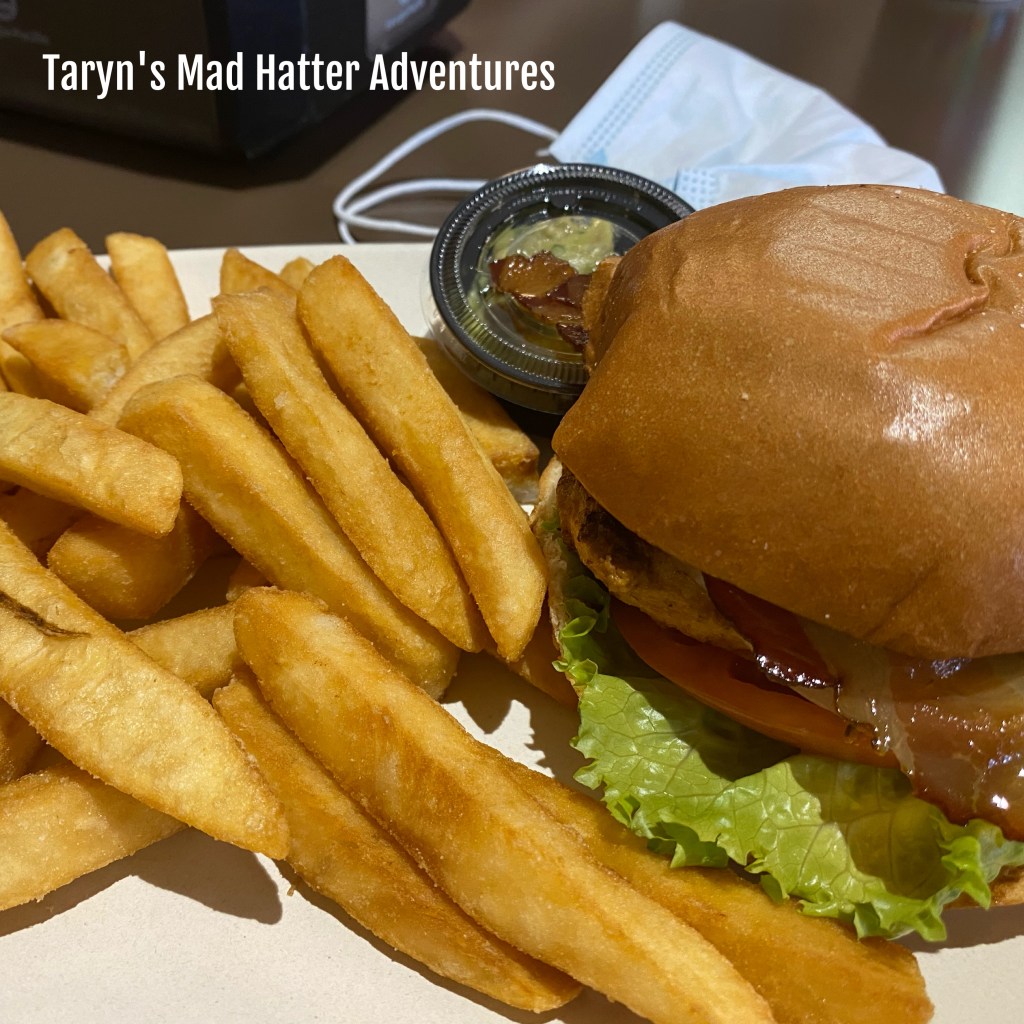 My daughter ordered the Chicken Club $12.49. Marinated chicken breast served on a toasted brioche bun, topped with bacon, provolone, guacamole, ranch dressing, lettuce and tomato, served with choice of side.