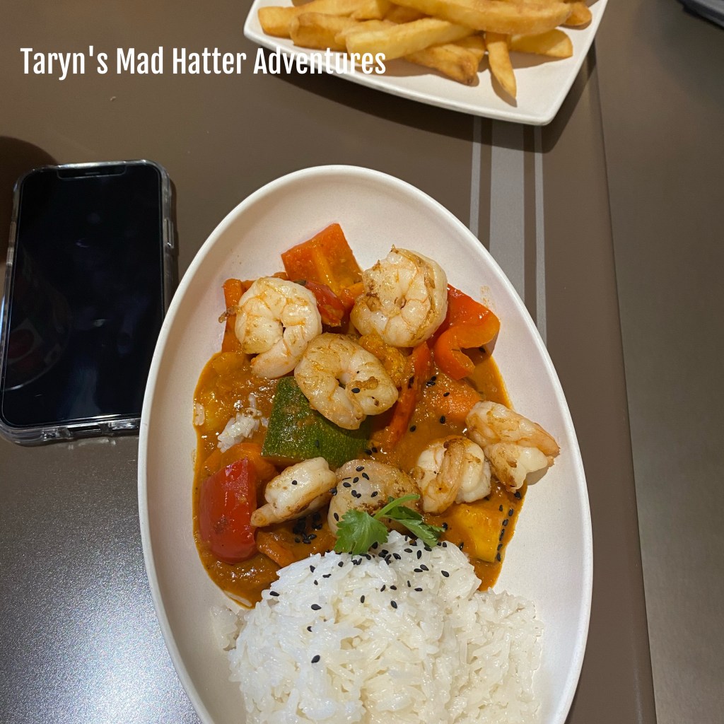 My sister-in-law ordered the Curry Rice Bowl with Shrimp. $13.99–sauteed shrimp and vegetables with red curry sauce, served with jasmine coconut rice.