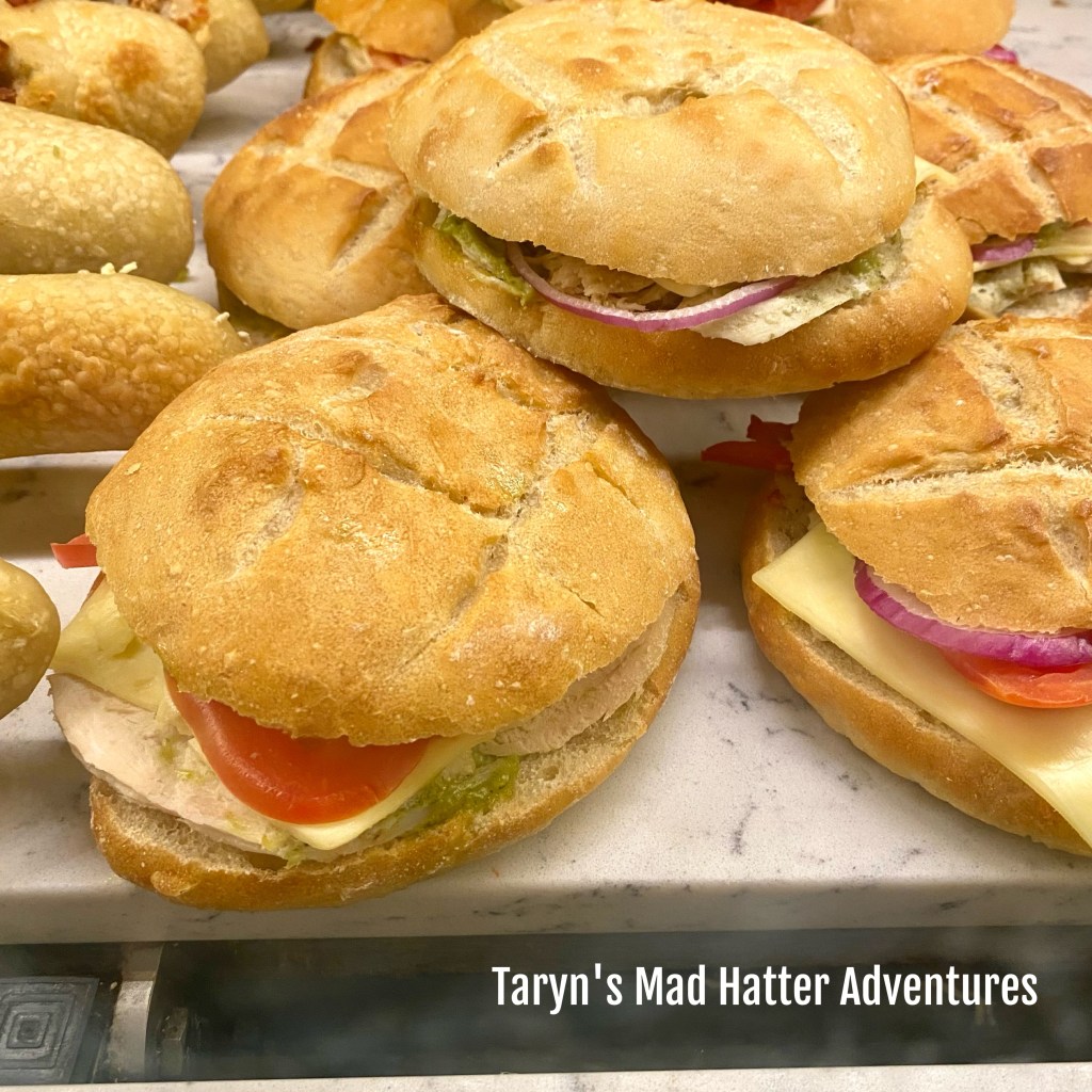 Poulet au Pistou–Chicken breast with cheese, tomato, red onion, and pesto. The chicken was very thinly sliced. It was warmed up and was delicious! I would absolutely get this again.