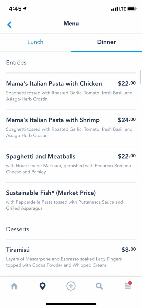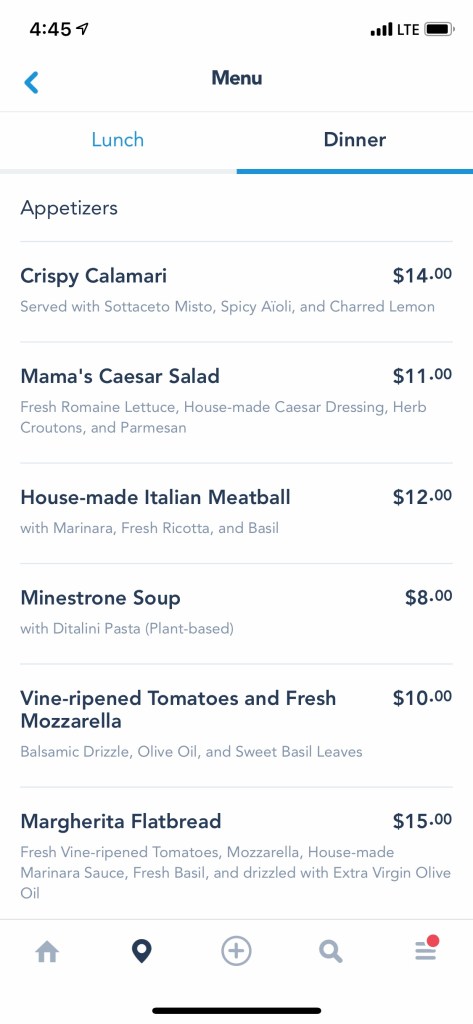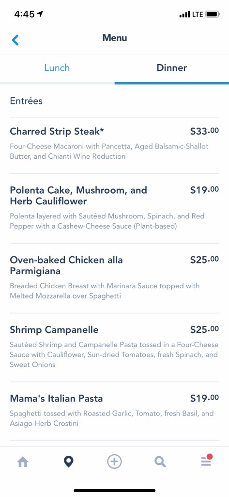 My travel partner got a return time for Tron. So we went over to Tomorrowland. I had a drink break and went on the People Mover while I waited for her. I also decided spur of the moment to make a lunch reservation at Liberty Tree Tavern, which is in my top 3 meals at Disney! There was plenty availability the day of, which is unusual.